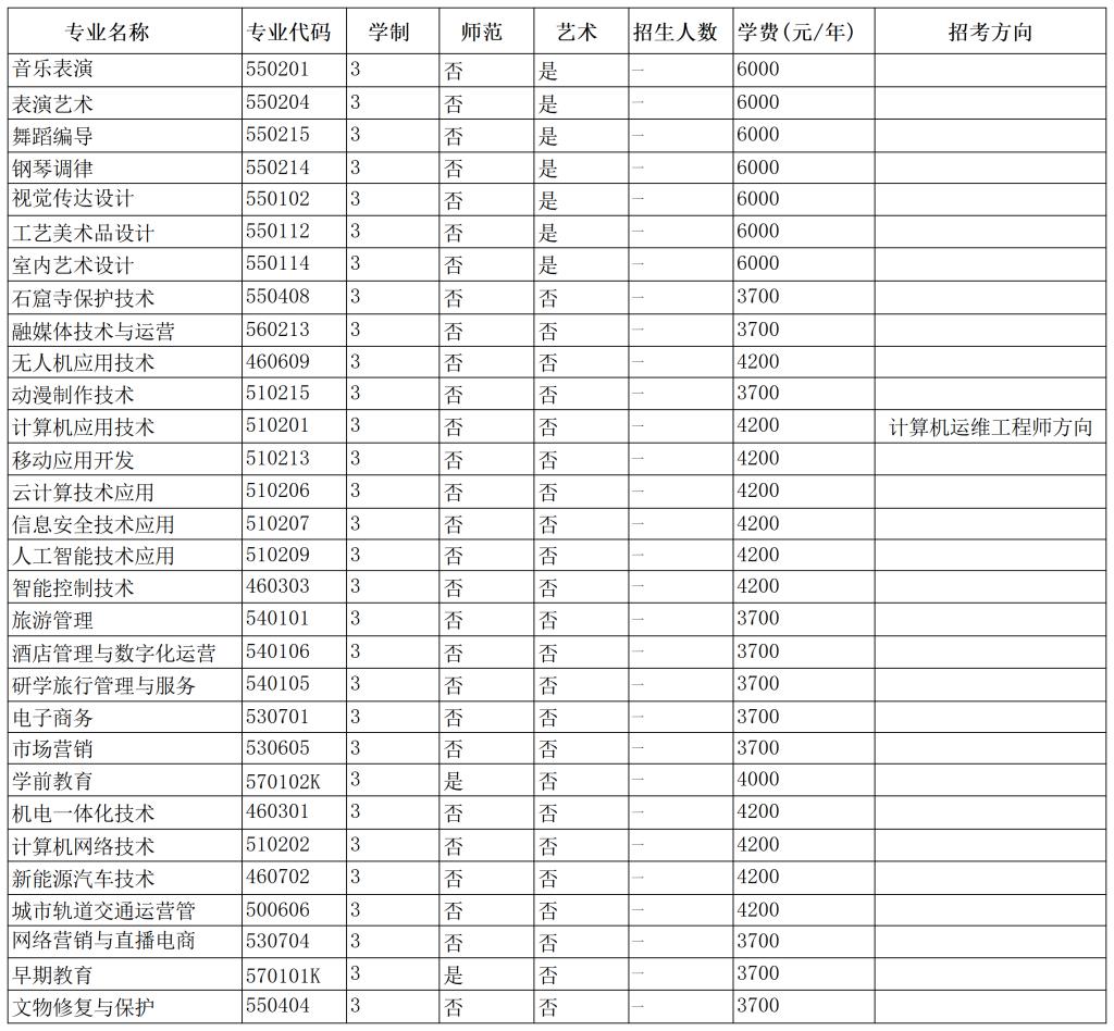 第十四条 收费标准。严格按照河南省和开封市物价主管部门审定的学费标准进行收费,艺术类专业学费为6000元/生•年,普通类文科专业学费为3700元/生•年,普通类理科专业学费为4200元/生•年,其中学前教育专业学费为4000元/生•年,其他各专业学费标准具体如附表所示。公寓宿舍费(6人间)为600元/生•年,公寓宿舍费(7至10人间)为500元/生•年。